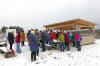 Kurze Rast an der neuen Huette am Klimaerlebnispfad