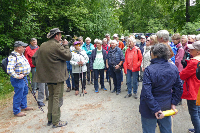 Foerster Gross begrueßt die Tauniden mit Hornsignal Sammelruf"