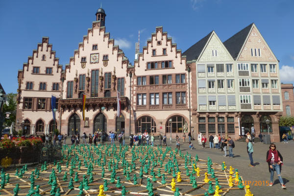 Wanderer vor dem Frankfurter Römer mit Ampelmännchen