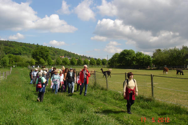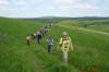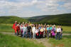 Usinger Wandergruppe auf dem Höhenweg im Holzbachtal. Wernborn im Hintergrund