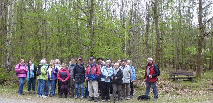 Kurze Rast der Usinger Wanderer auf dem Schwarzen-Punkt-Weg zum Hessenkopf