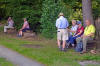 Bei großer Hitze erreichen die Wanderer abgekaempft die Huette "Weiltalblick"
