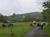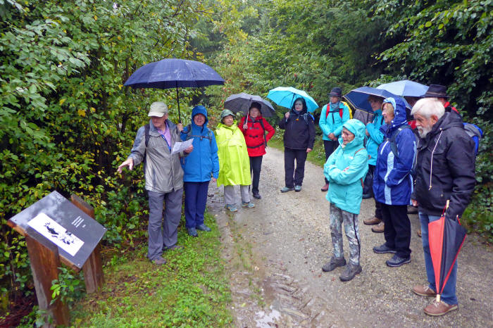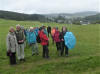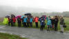 Wandergruppe auf der Höhe im Regen oberhalb von Dorfweil