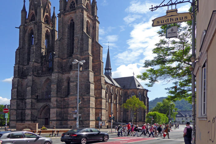 Strassenüberquerung der Usinger Wanderer an der Elisabethkirche