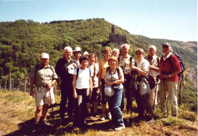 Teil der Wandergruppe 1 mit Burg Maus im Hintergrund
