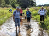 Usinger Wanderer ohne Schuhe durch tiefe Pfuetzen