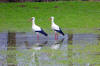 Zwei "winterharte" Stoerche in der Feuchtwiese Weltes